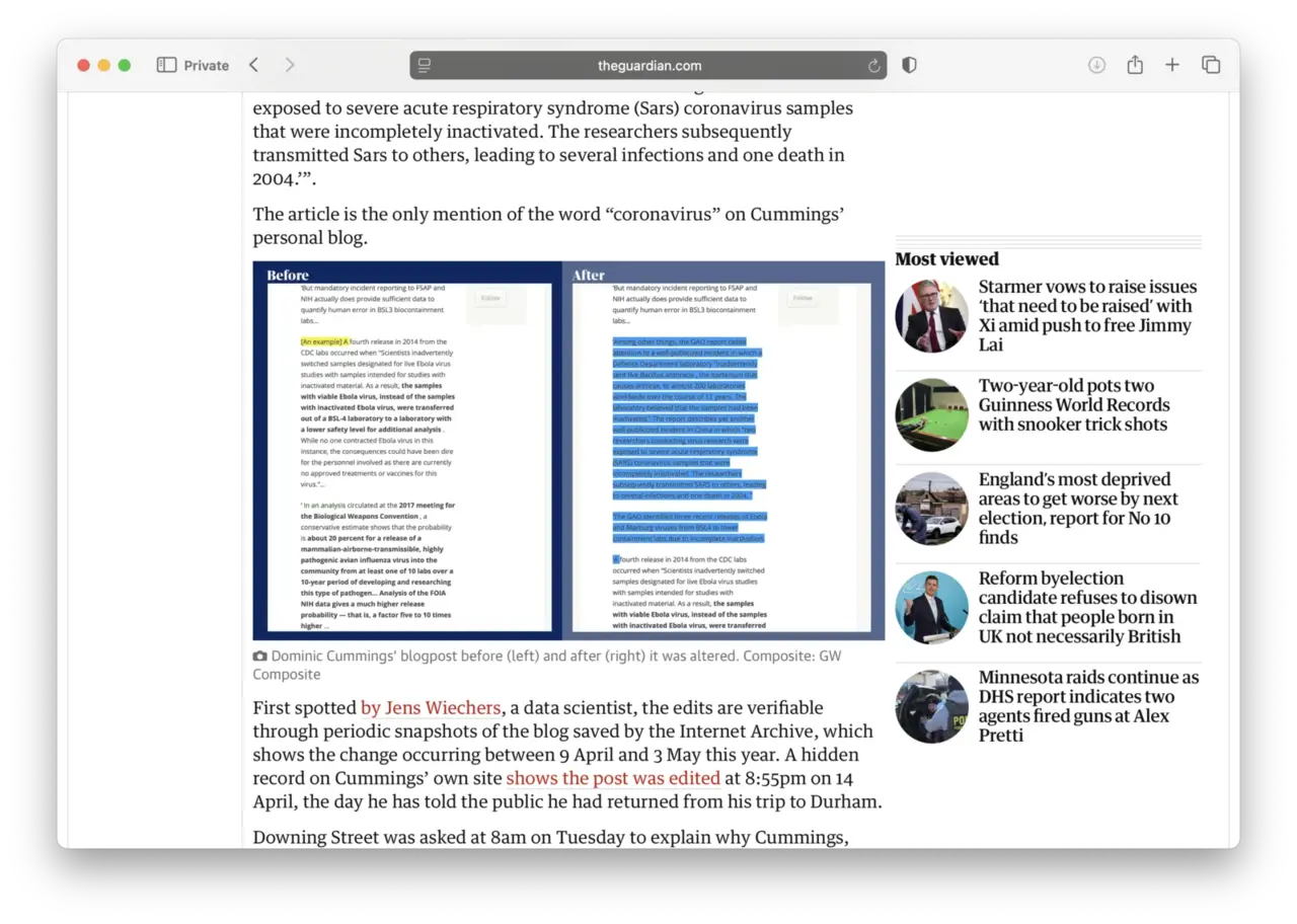 In other cases, small additions to online content have proved just as revealing. A before and after snapshot of a blog post showed how a supposed early warning about a virus threat was added only after the pandemic began. Similarly, changes to a social media platform’s API rules appeared shortly after third-party apps were banned, subtly reframing the policy to align with new restrictions.