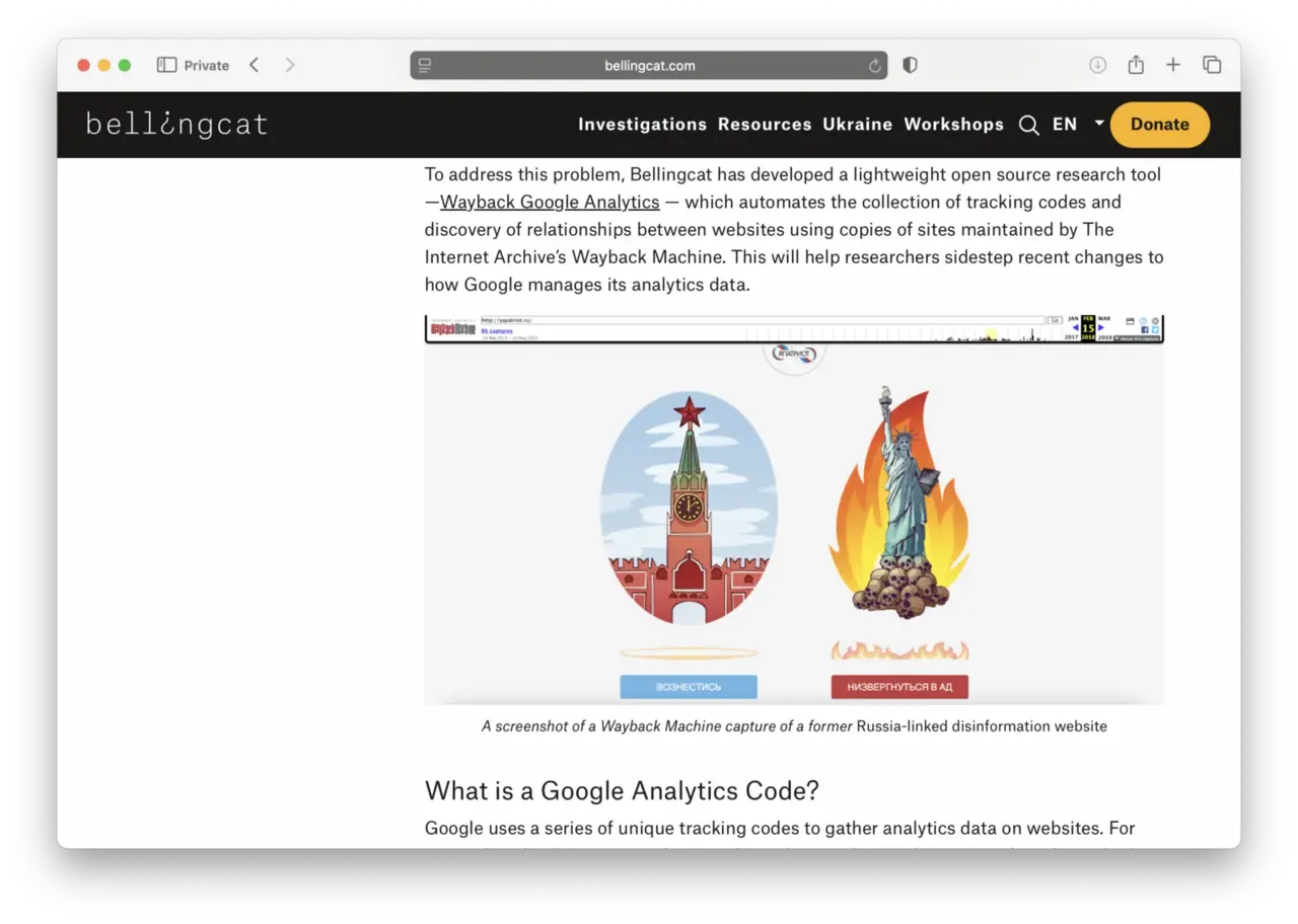 For example, journalists used analytics codes of copies of sites maintained by the Wayback Machine to uncover disinformation networks. In another investigation, archived records verified that a website redirect to Joe Biden’s presidential campaign was unrelated to him, debunking conspiracy theories about the domain’s ownership.