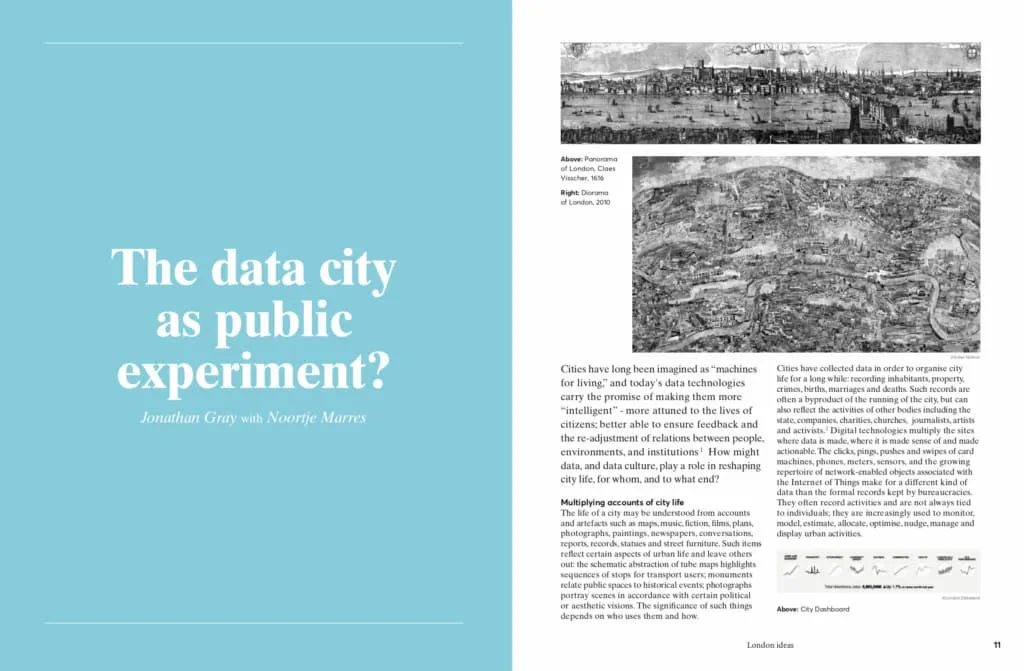 An essay on “The Data City as Public Experiment?” that I wrote with Noortje Marres (Centre for Interdisciplinary Methodologies, University of Warwick) has just come out in London Ideas, a new publication from the Centre for London. You can download a PDF of the piece here. The précis is as follows: