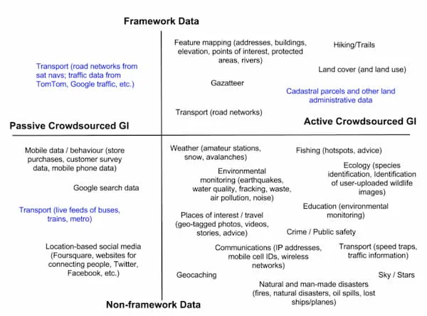 These different conceptions are supported by practices, methods and technologies involved in doing citizen-generated data in different ways – including sensing devices, online platforms, the internet of things, mobile apps, maps, surveys, drones, satellite imagery, score cards, engagement exercises and crowdsourcing software components.