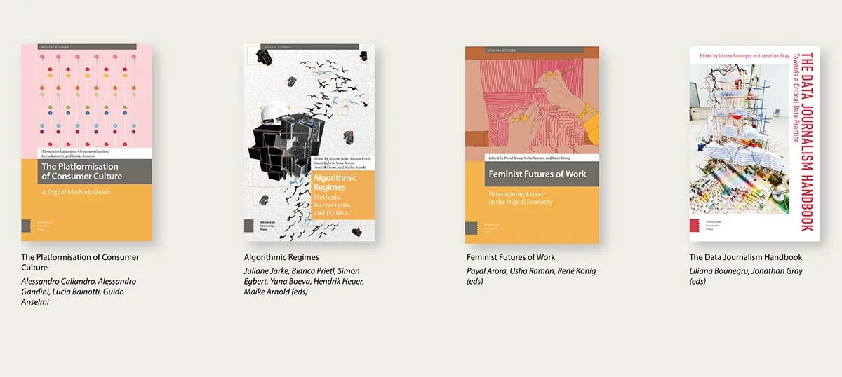 first four books in digital studies series at Amsterdam University Press: platformisation of consumer culture, algorithmic regimes, feminist futures of work and critical data practices